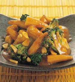 Heat the oil in a wok over a high flame, add the ginger, garlic and green chillies and stir-fry for a few seconds.