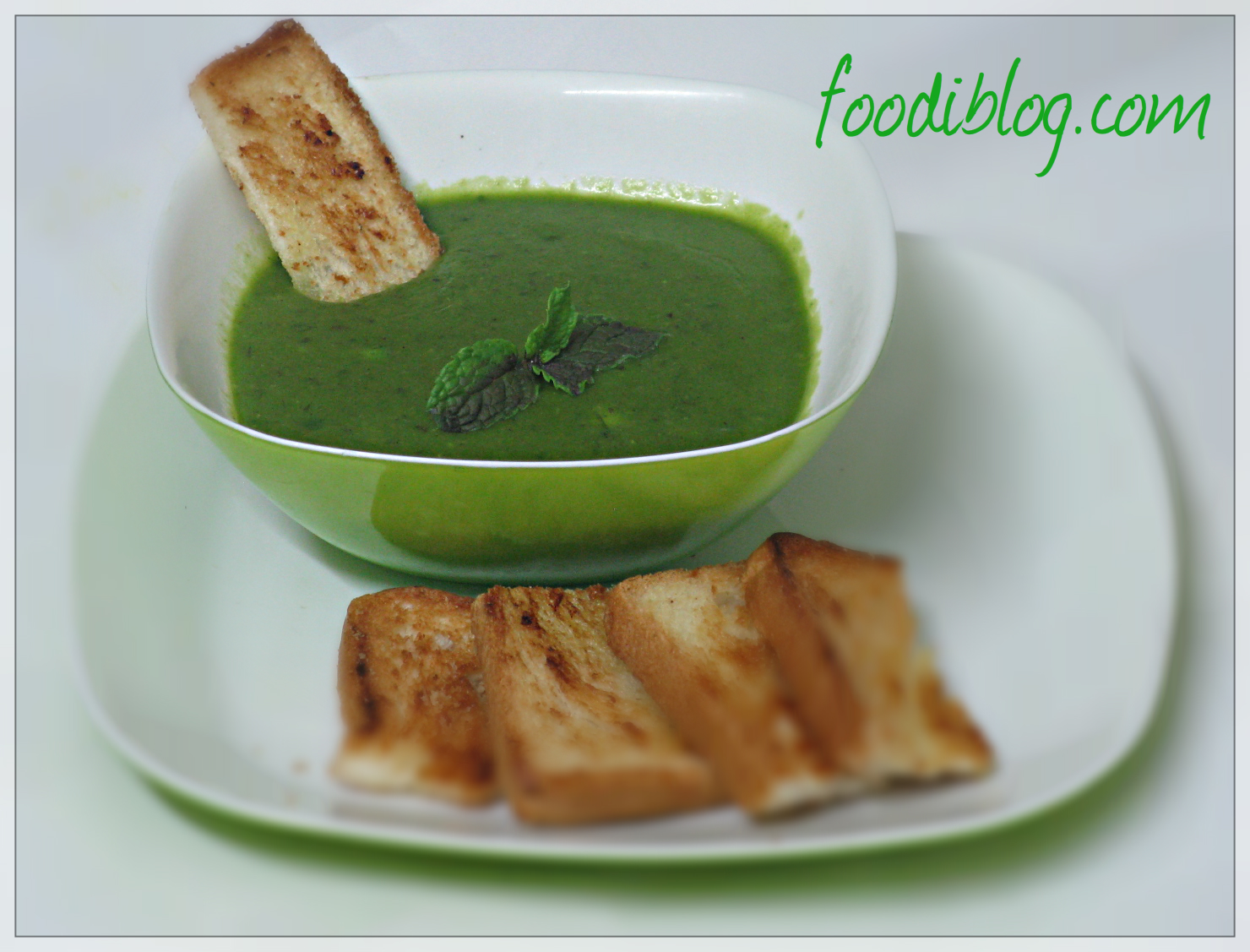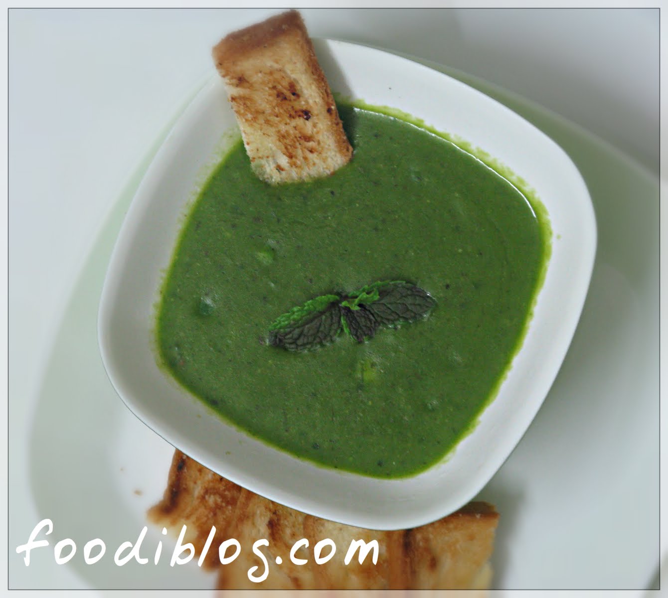 This soup blends Spinach and Green Peas along with Mint to give you the Health punch. I prefer to have this soup along with Bread Toast in my dinner and this turns out to be the healthiest and yummiest dinner option. To give this soup more twist, Dried Parsley and Rosemary have been added (In India, this are not available fresh so we have to use Dried. We can easily get this at Super market and my personal favourite brand is KEYA).